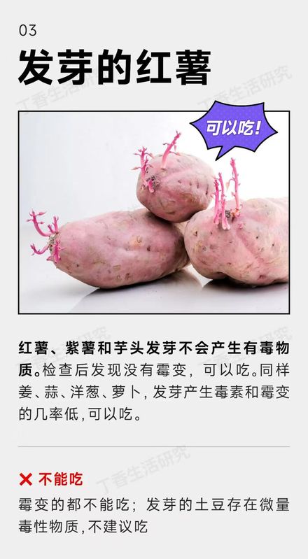 ● 发芽无霉变的红薯可以吃,发芽的土豆不要吃